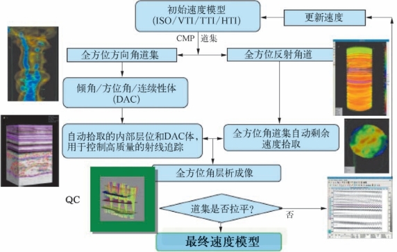 图3—53 基于全方位角的层析成像速度模型迭代流程