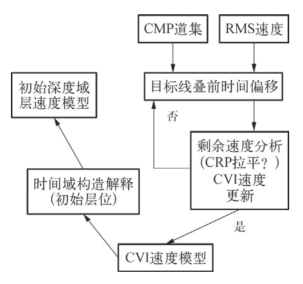 图3—62 时间域层速度建模向初始深度域速度模型转化流程