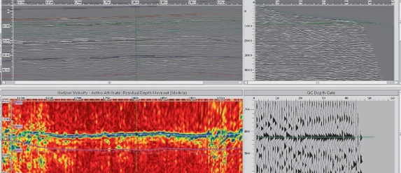 常规速度建模完成后,我们可得到比较准确的深度域速度模型和地震偏移成像数据体。