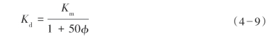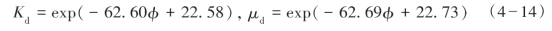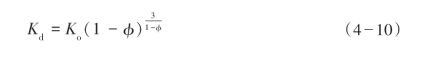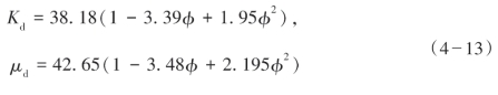 ① Geertsma和Smit根据测量得到了一个可适用于纯砂岩的干岩石体积模量Kd与岩石基质模量Km和孔隙率φ的经验公式: