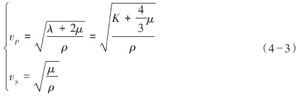根据弹性波动方程理论,在均匀各向同性完全弹性介质中,密度ρ反映单位体积岩石的质量,纵波速度P和横波速度