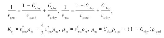 sclay分别是砂和泥的横波速度;ρsand和ρclay分别为砂和泥的密度;Km、μm和ρm分别是岩石骨架的体积模量、剪切模量和密度。用这种方法计算泥质砂岩的干岩石模量,需要已知砂、泥的基质纵、横波速度和密度等。在缺乏岩心的实验室测量数据时,这种方法是可行的。