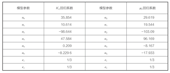 回归系数如表4—1所示:在回归系数中,数值单位是GPa。