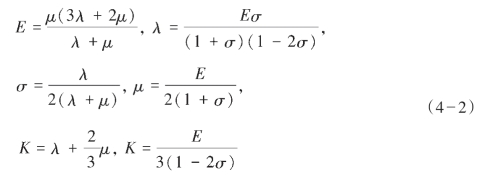 S可用密度ρ、体积模量K与正应变模量λ和剪切模量μ表示如下: