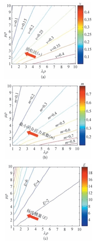 (a) 泊松比;(b) 最小闭合应力系数;(c) 杨氏模量