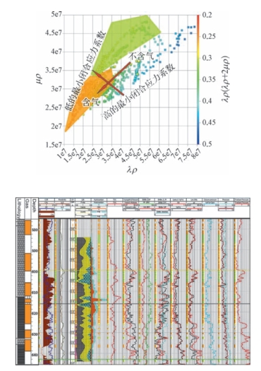 图4—30 λρ-μρ-闭合应力系数交会(上)与井低应力性和含气性评价(下)