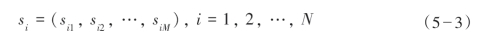 式(5—5)包含M+1个未知系数j和N个已知的值(训练样本值)。通常,训练样本值的个数N远多于地震属性的个数M,求解这个超定方程组有很多方法,这里就不赘述了。本方法中,多线性回归方法用于找到地震属性最佳的排序来反馈到神经网络中。式(5—4)的最小二乘解可表达为: