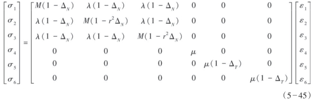 正如上面所讨论的,由式(5—42)所给的关系,地层所受的应力可以依据刚性矩阵C写成如下方程: