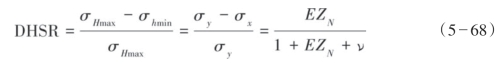 根据式(5—59)和式(5—60)所得的最大水平应力和最小水平应力的差分比或水平应力差分比DHSR(Differential Horizontal Stress Ratio)可描述为: