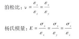 泊松比描述纵向应变与横向应变之间的关系,杨氏模量是根据胡克定律获得的弹性形变。泊松比和杨氏模量可用下式表示。