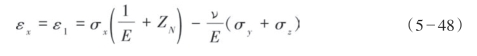 根据Iverson理论,求解式(5—50)得到σy并代入等效公式中求解y方向的应变,得到式(5—51):