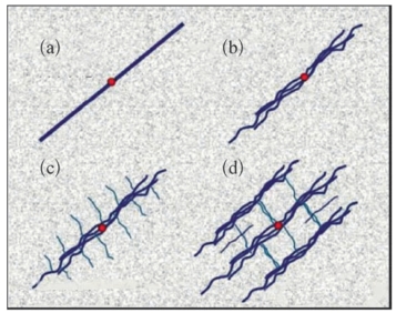 (a)简单裂缝;(b)定向排列复杂裂缝;(c)较大裂缝中存在开启的小裂缝;(d)复杂成网裂缝