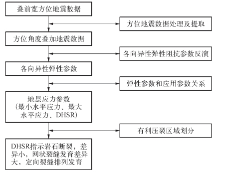 页岩气储层具有强非均质性和各向异性特征。页岩气储层的非均质性和各向异性特征必然会引起各种地震属性参数的变化,包括由岩性、裂缝、应力、流体饱和度、孔隙压力相互作用所引起的地下地震波速度以及各种弹性参数的变化等。不平衡的水平应力和垂向上排列的裂缝会引起地震速度或振幅随激发—接收方位的不同而变化。页岩气储层的强非均质性和各向异性特征给页岩气储层应力场预测带来新的挑战。通过建立地层应力场与地震弹性参数、各向异性参数等之间的定量关系,可实现页岩地层应力场地震岩石物理参数的定量表征。在构建有效的数学物理模型的基础上,通过页岩地层方位各向异性地震反演,进一步获得地层水平应力变化率,作为地层是否可压裂成网的有力证据,实现页岩地层可压裂性评价。