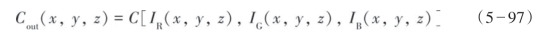 式中,Cout(x,y,z)是输出数据体在点(x,y,z)赋予的颜色值;IR(x,y,z)、IG(x,y,z)和IB(x,y,z)分别是点(x,y,z)的像数值,分别用来控制红、绿及蓝的贡献。