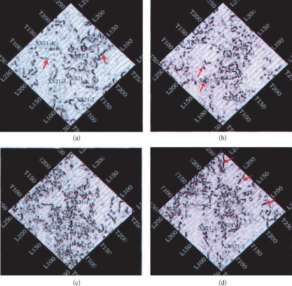 第三步:压制减少多余和异常的时间切片矢量。经过了前面两步的处理,留下来的线性增强条带就是断层或者裂缝的反映。