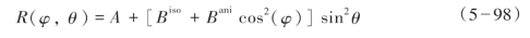 用于描述纵波反射振幅的Zoeppritz方程有很多的近似公式,各近似形式所突出的重点不同。Ruger(1998)基于弱各向异性的概念,推导出了HTI介质中纵波反射系数与裂缝参数之间的解析关系。Ruger(1996)研究表明,在HTI介质中,P波的AVO梯度在沿平行于裂缝走向和沿垂直于裂缝走向的两个主方向上存在较大差异。这是进行P波AVO裂缝检测的理论基础。在小入射角情况下,把反射系数Rpp(φ,θ)表示成与梯度方位无关的各向同性梯度Biso和各向异性梯度Bani与方位角余弦函数平方的乘积: