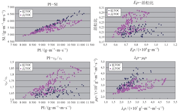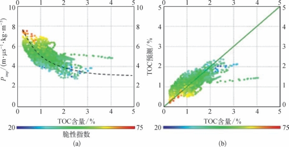 图5—59 TOC含量与(a)纵波阻抗和(b)脆性指数的交汇分析