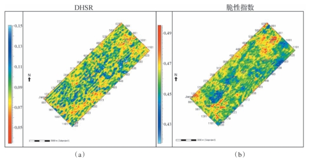 图5—85 (a)反演的DHSR图和(b)脆性指数反演结果