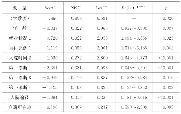 表4-9 心脏科不同户籍所在地患者的入院适宜性回归结果
