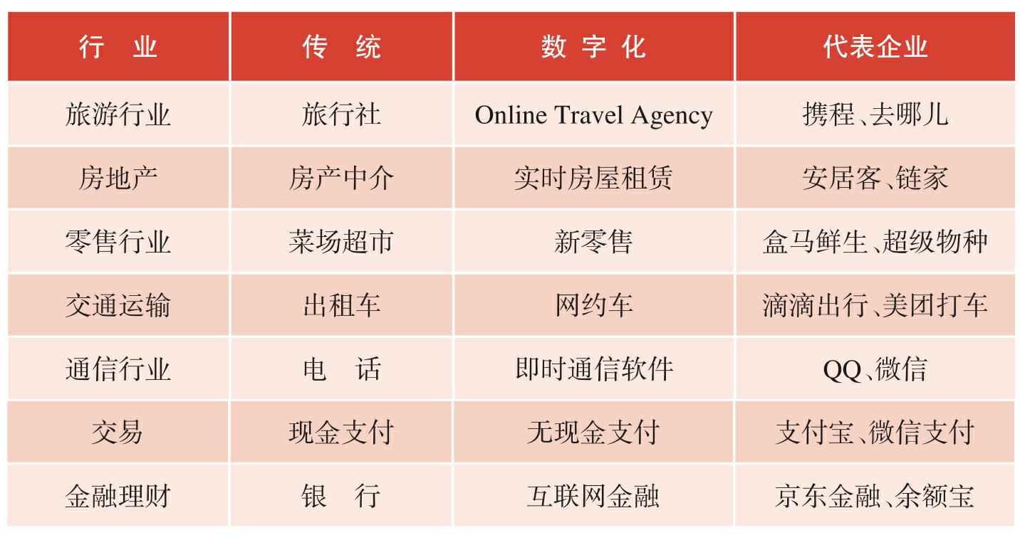 表1.1 部分数字化颠覆的传统行业