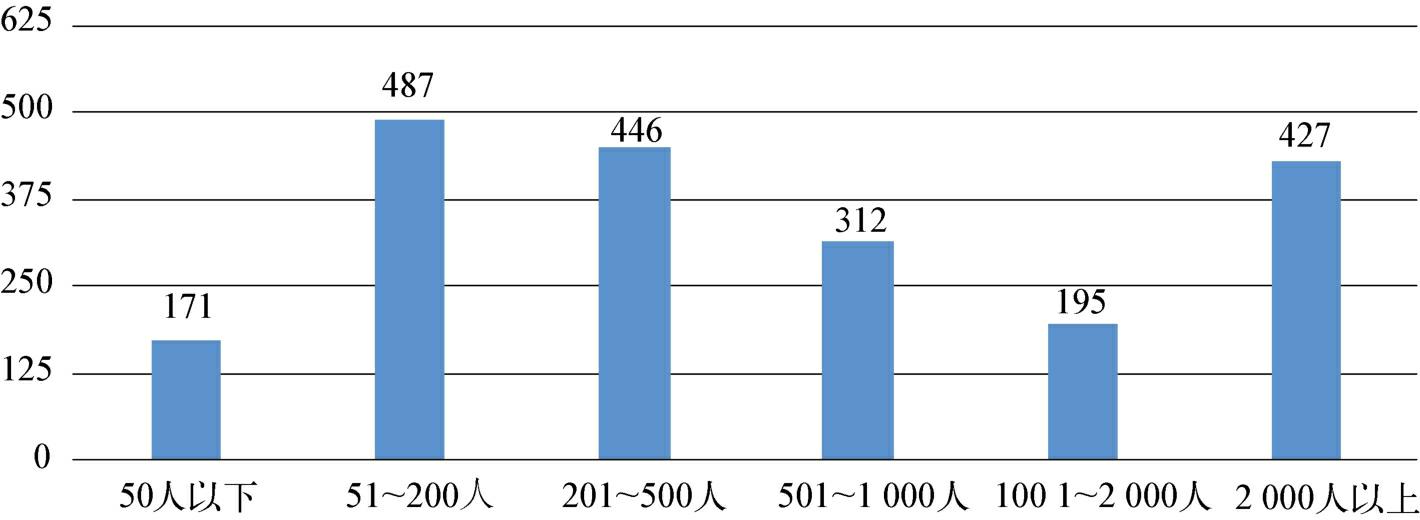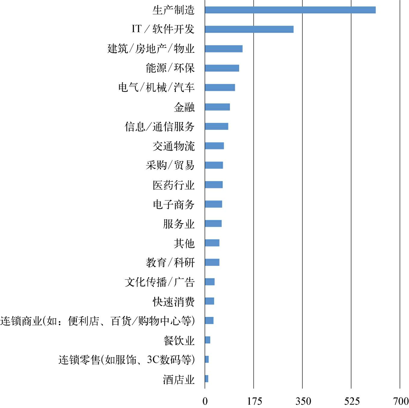 在2 038份有效问卷中,被调查者所在企业规模覆盖广泛,涉及中小微及大型企业,其中50人到200人、201人到500人的中小型企业以及2 000人以上的大型企业在调查者所在的企业中占比最高(见图3.3)。企业所处行业类型分布广泛,其中生产制造、IT/软件开发领域占比最高,其余涉及交通物流、信息、通信服务、金融、电气/机械/汽车、能源/环保、建筑/房地产/物业等行业(见图3.4)。