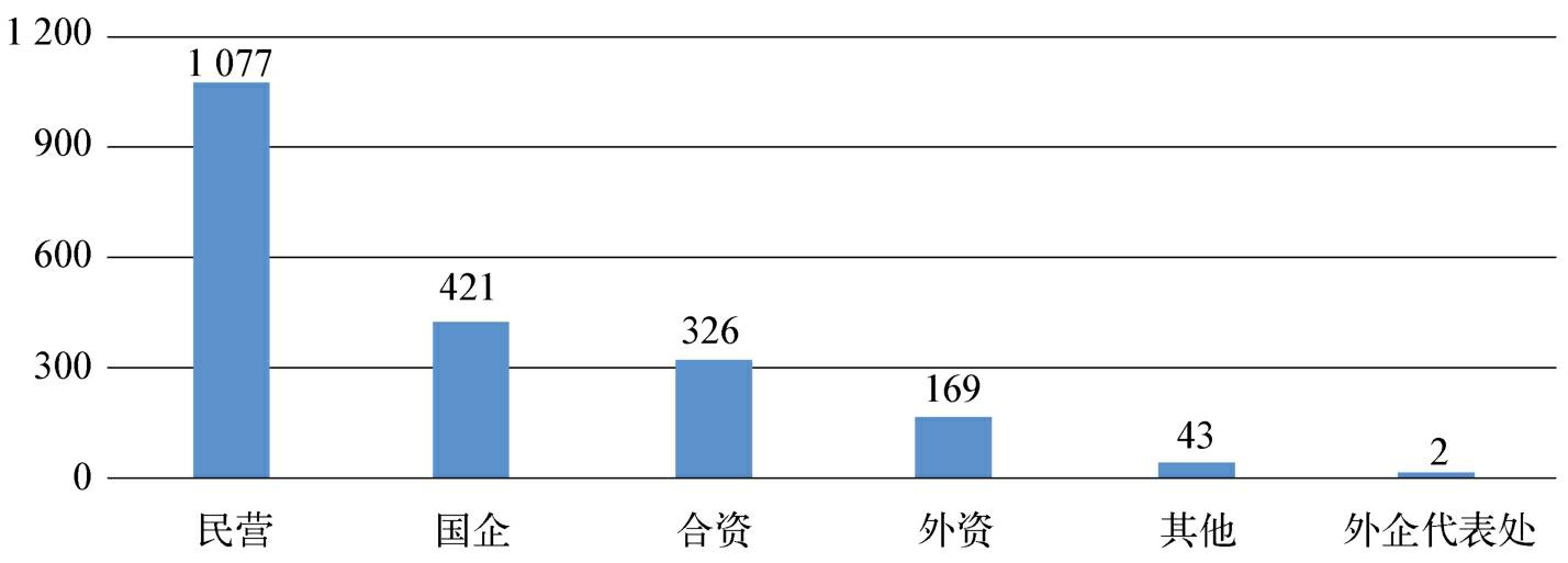 图3.4 被调查企业中,生产制造业占比较高(单位:频次)