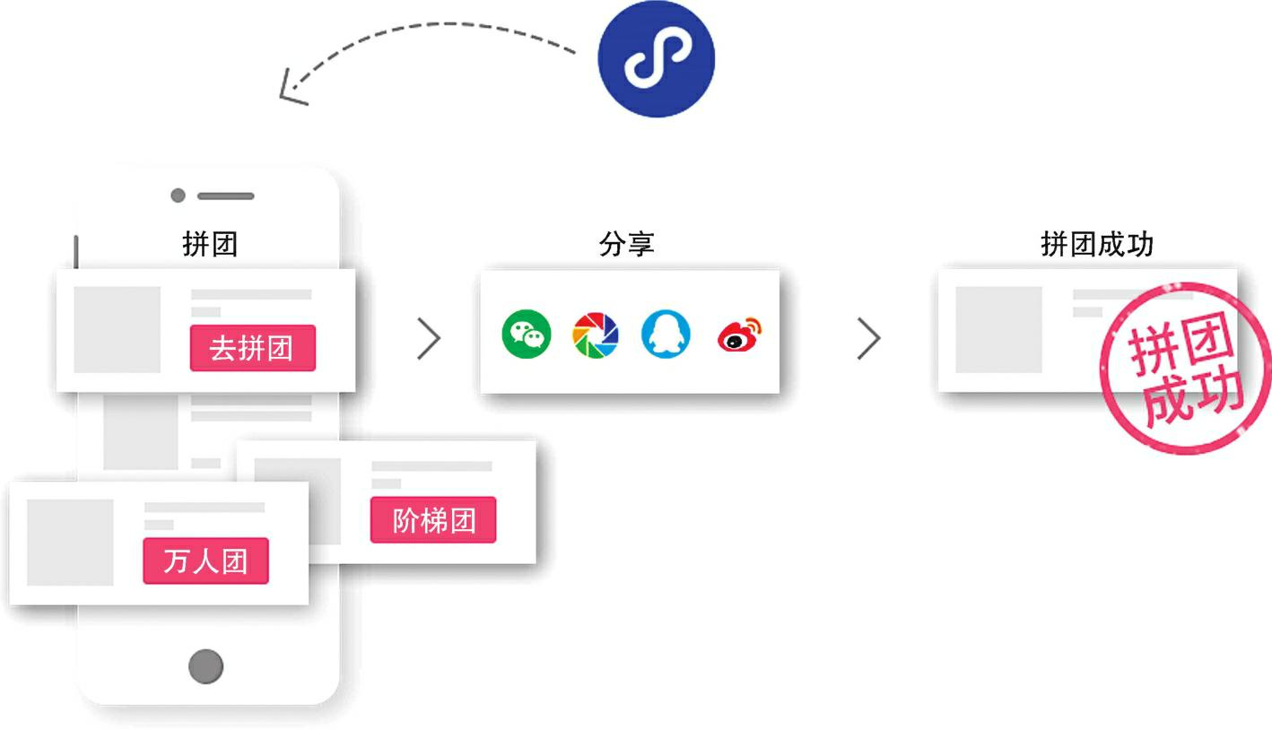 最典型的例子是拼多多的“砍价”分享——拼多多发现了一批对大品牌缺乏认知能力的下沉城市人群,利用他们的社交关系将商品分享出去,在完成社交关系时,拼多多能收获一个更大的流量池。
