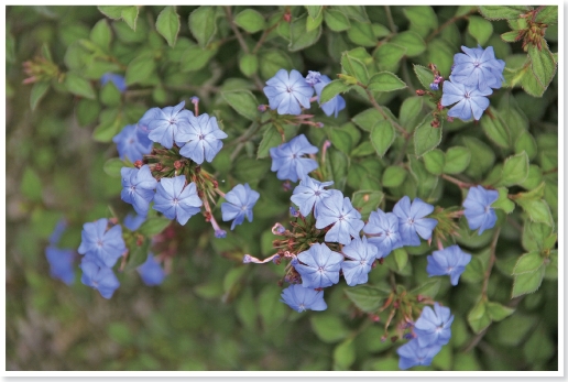 岷江蓝雪花,Ceratostigma willmottianum,俗名紫金莲,为少数民族用药,具有活血、止痛等功效,因威尔逊于1908年7月和11月在四川岷江河谷汶川境内海拔1 300~2 000m发现而得名岷江蓝雪花。