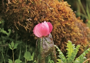 2017年6月,我们在双桥沟保护站口下车,两侧山峰上镶嵌着蔷薇红、淡红色、白色满树繁花的高山杜鹃,草坪上开着粉红色的桃儿七。此次我们选择了三条样线:沟口附近的山峰、沟中撵鱼坝附近的沼泽、布达拉峰。
