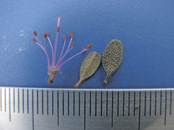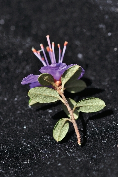 【主要识别特征】 小灌木,小枝和叶柄披鳞。叶片狭椭圆形、狭倒卵形或倒披针形,先端圆形或锐尖,无或具短尖头;表面密披鳞,背面淡黄绿色,被鳞邻接或重叠,鳞片淡黄褐色,稀杂有少量琥珀色鳞。单花顶生,稀1~2花;花梗披鳞;花萼不发育,通常紫红色,波状或具不明显5裂;花冠阔漏斗状至近碟形,长0.6~1.2cm,淡紫蓝色至深紫红色,外面无鳞或散生,内部喉部披柔毛;雄蕊10,与花冠短或稍长,花丝基部披柔毛或无毛;子房密披鳞,花柱基部稀散生毛。