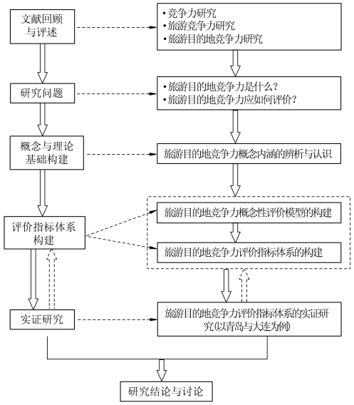 本文在文献综述的基础上找出两个有待解决的主要问题,即旅游目的地竞争力概念内涵的明确界定与旅游目的地竞争力评价指标体系的构建,前者是概念基础,后者是研究主题。全文在对“旅游目的地竞争力”概念内涵进行归纳与辨析的基础上,主要围绕“旅游目的地竞争力评价指标体系的构建与检验”这一核心问题展开论述。