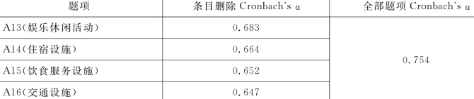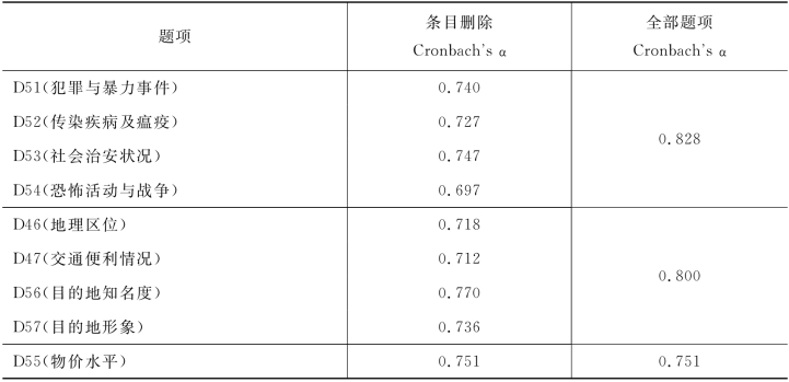 表4-15 Cronbach's α与条目删除Cronbach's α——目的地管理因素