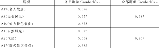 表4-7 Cronbach's α与条目删除Cronbach's α——核心资源与吸引物因素
