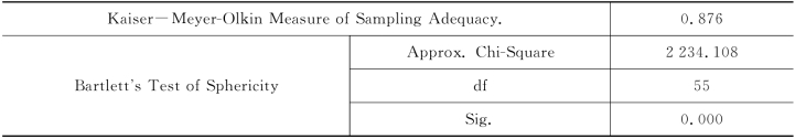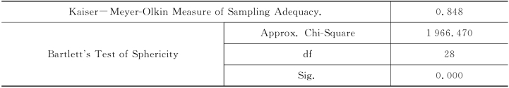 辅助性与支持性因素的KMO值和Bartlett球度检验结果参见表4-25。
