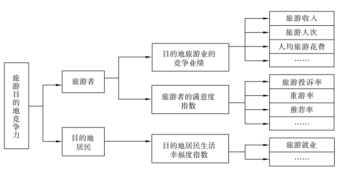 前文第三章在对“旅游目的地竞争力”这一概念的内涵进行辨析时,已详细阐述过旅游目的地竞争力的表现形式。旅游目的地竞争力是指相对于旅游者而言的竞争能力与相对于目的地居民而言的竞争能力的总和。其中,就针对旅游者的竞争能力而言,其表现形式主要包括目的地旅游业的竞争业绩以及旅游者的满意度指数;就针对目的地居民的竞争能力而言,其表现形式主要是目的地居民的生活幸福度指数。大体内容可参见图4-5,此处不再赘述。