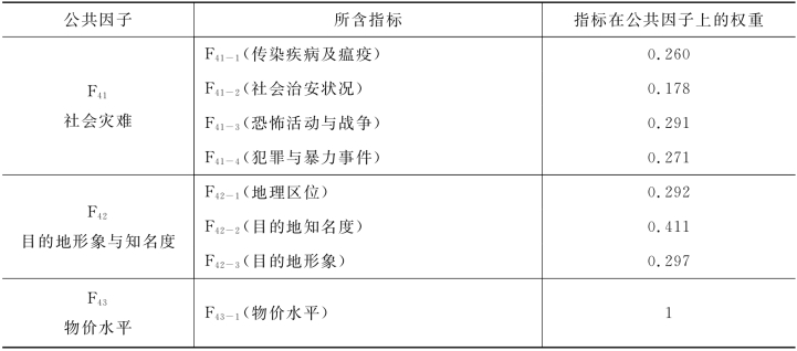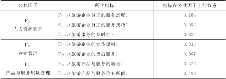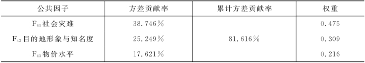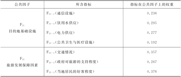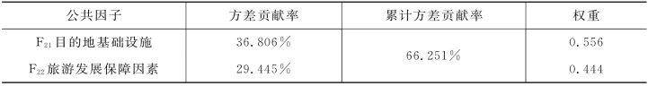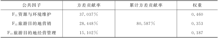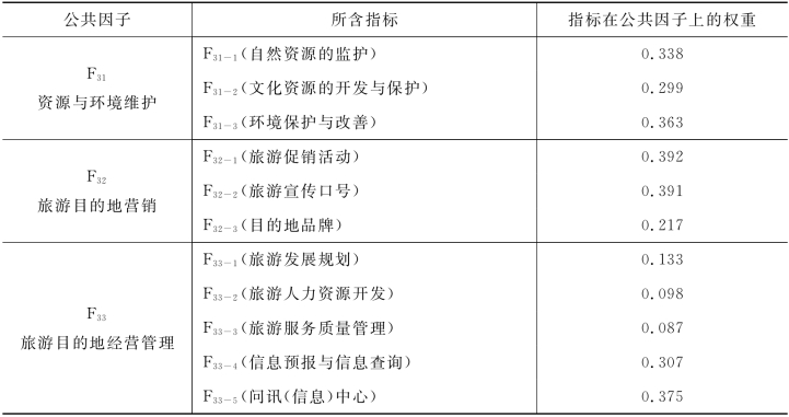 表5-16 目的地管理因素公共因子的权重