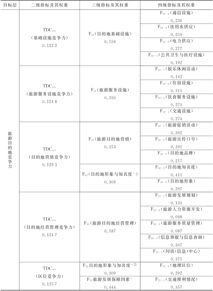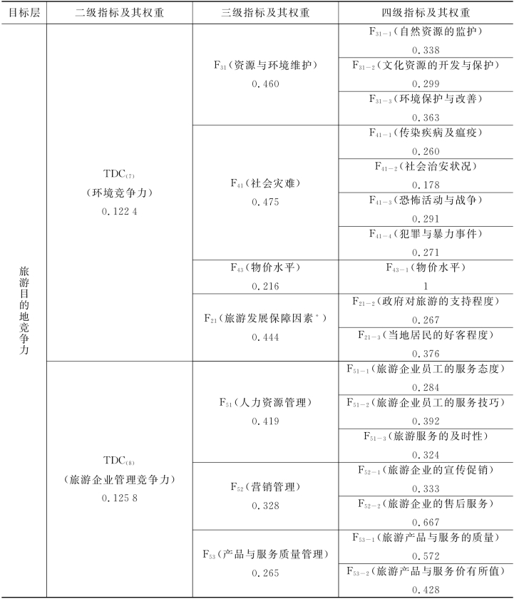 表5-19 旅游目的地竞争力分力TDC(w)的权重