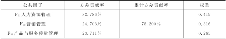 表5-18 旅游企业管理因素公共因子的权重