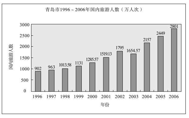 图6-1 青岛市1996~2006年国内旅游人数