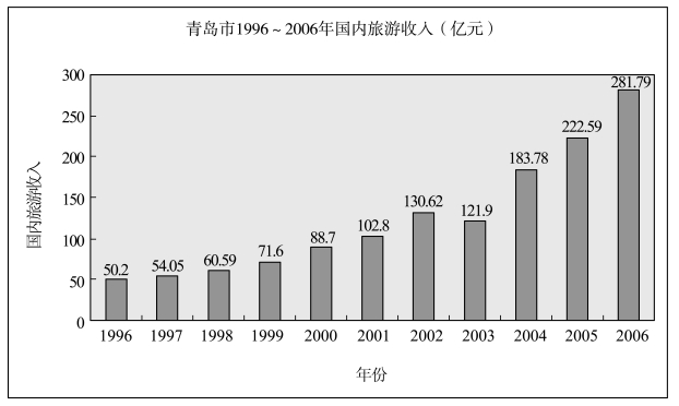 图6-2 青岛市1996~2006年国内旅游收入