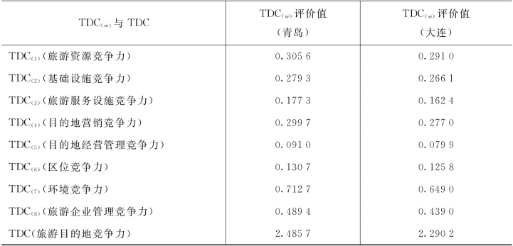 如表6-14所示,青岛TDC(w)评价值与总的TDC评价值也高于大连。
