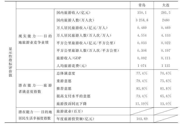 总之,利用分析性评价指标能够得出青岛旅游目的地竞争力大于大连旅游目的地竞争力的结论。