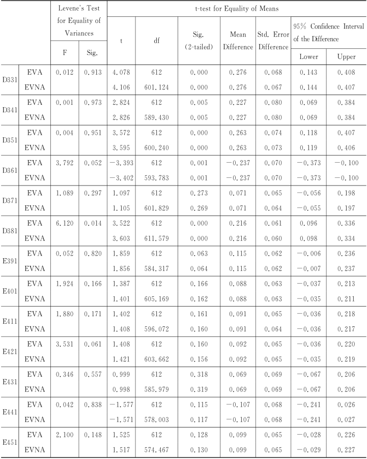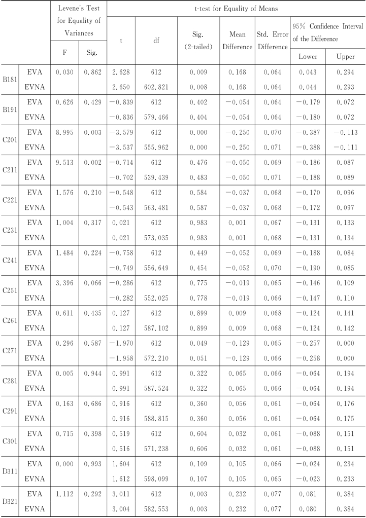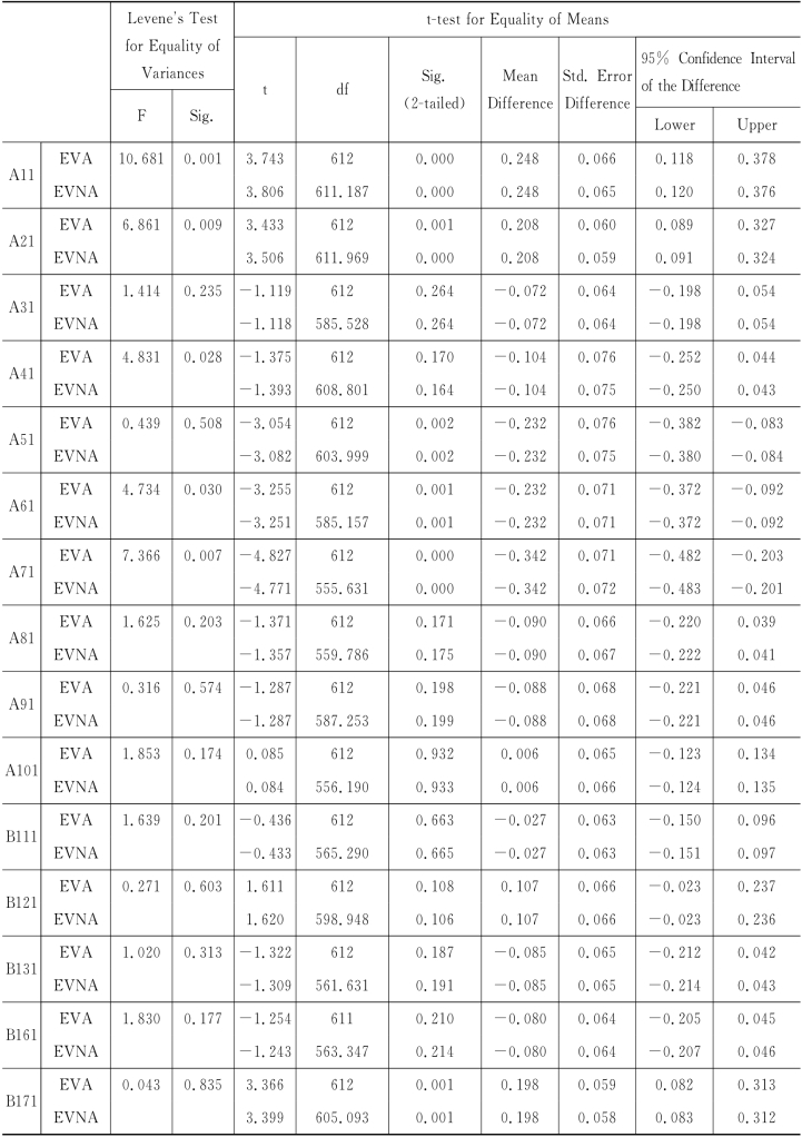 EVA:Equal variances assumed;EVNA:Equal variances not assumed.