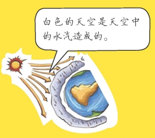 如果空气中水汽较多,会遮挡住一部分射向地球的太阳光,阳光便少了,这时,我们看到的天空就是浅蓝色、浅灰色或者是白色的了。