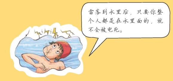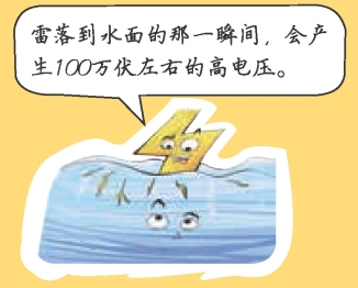 所以,雷落到水里后,要想不被电死,就要完全潜入水中。这样就算雷的电压很高,水下的人也不会触电。