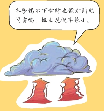 在温暖的冬天,也容易出现雷电。只是诸如冬天天气干燥,空气不易导电等因素,导致了冬季云层较少产生放电现象,但并不是说冬季下雪的时候就一定不会出现雷电现象。有时下雪也能看到电闪雷鸣,但是较为少见,出现概率很小。