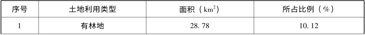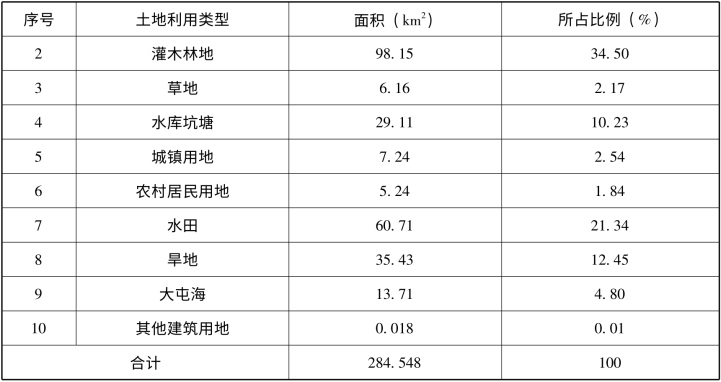流域内主要的土地利用类型为灌木林地,约占流域总面积的34.5%;其次是水田、旱地等。土地利用状况见表4 -3。