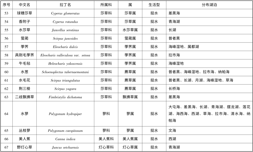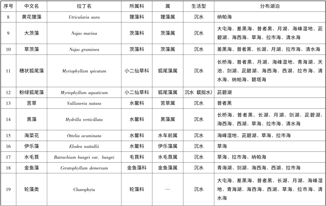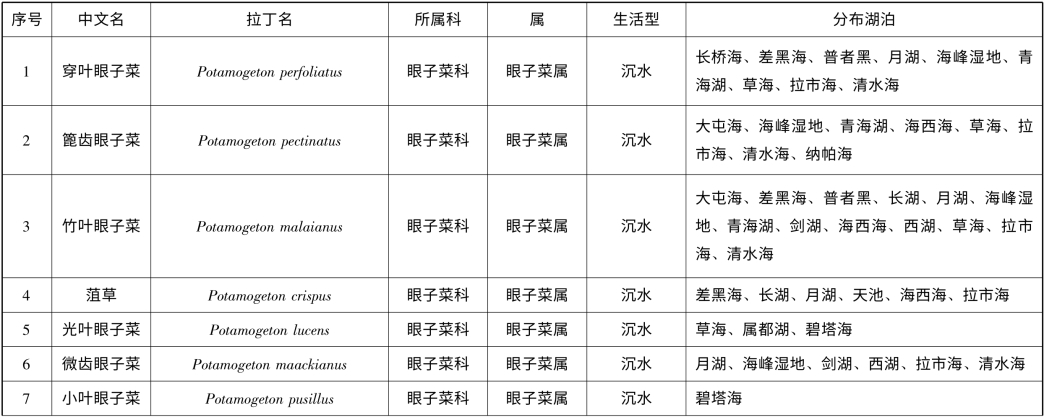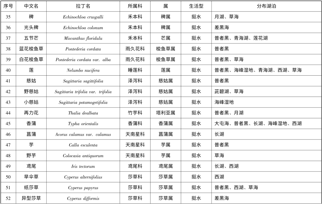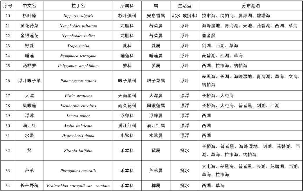 附录1 云南省1km2 以上天然湖泊(不含九大高原湖泊)大型水生植物名录