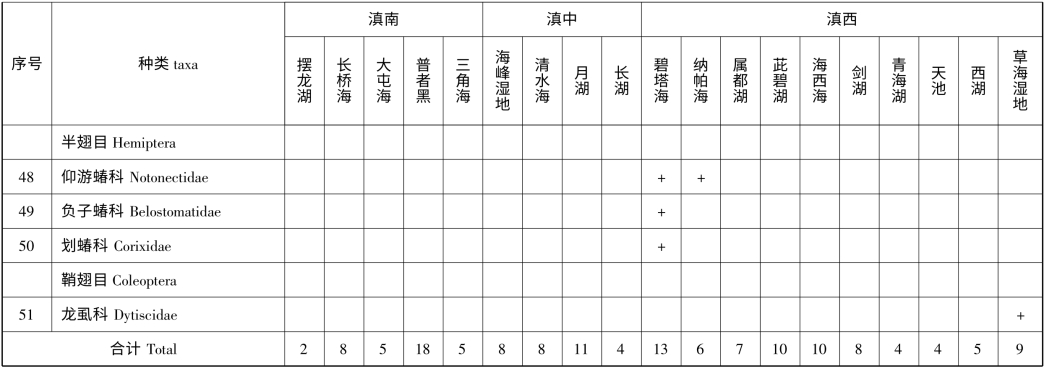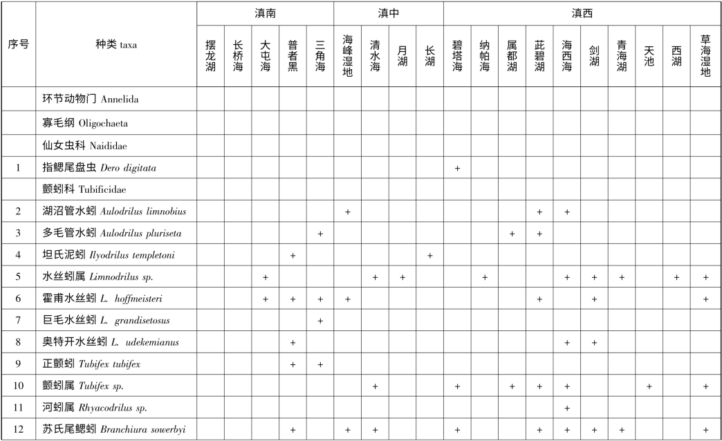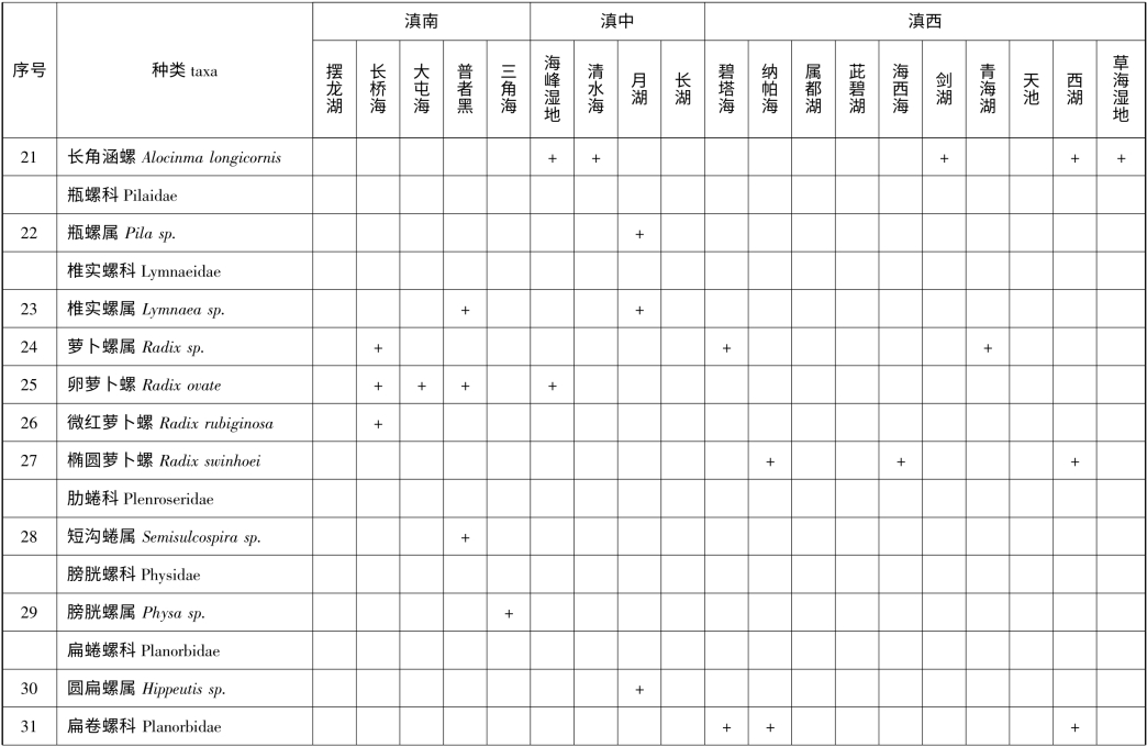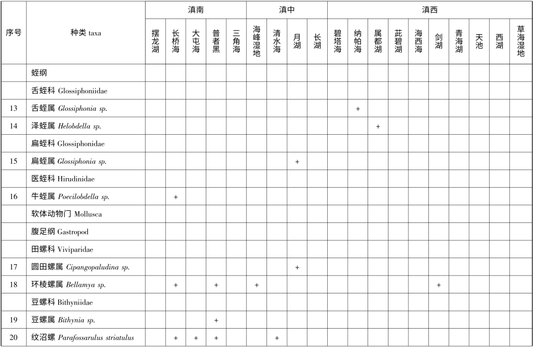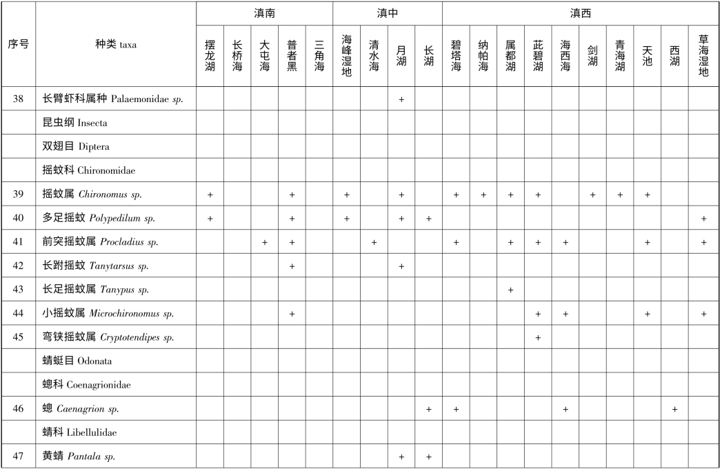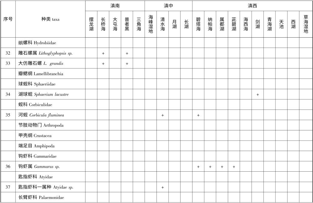 附录2 云南省1km2 以上天然湖泊(不含九大高原湖泊)底栖动物名录