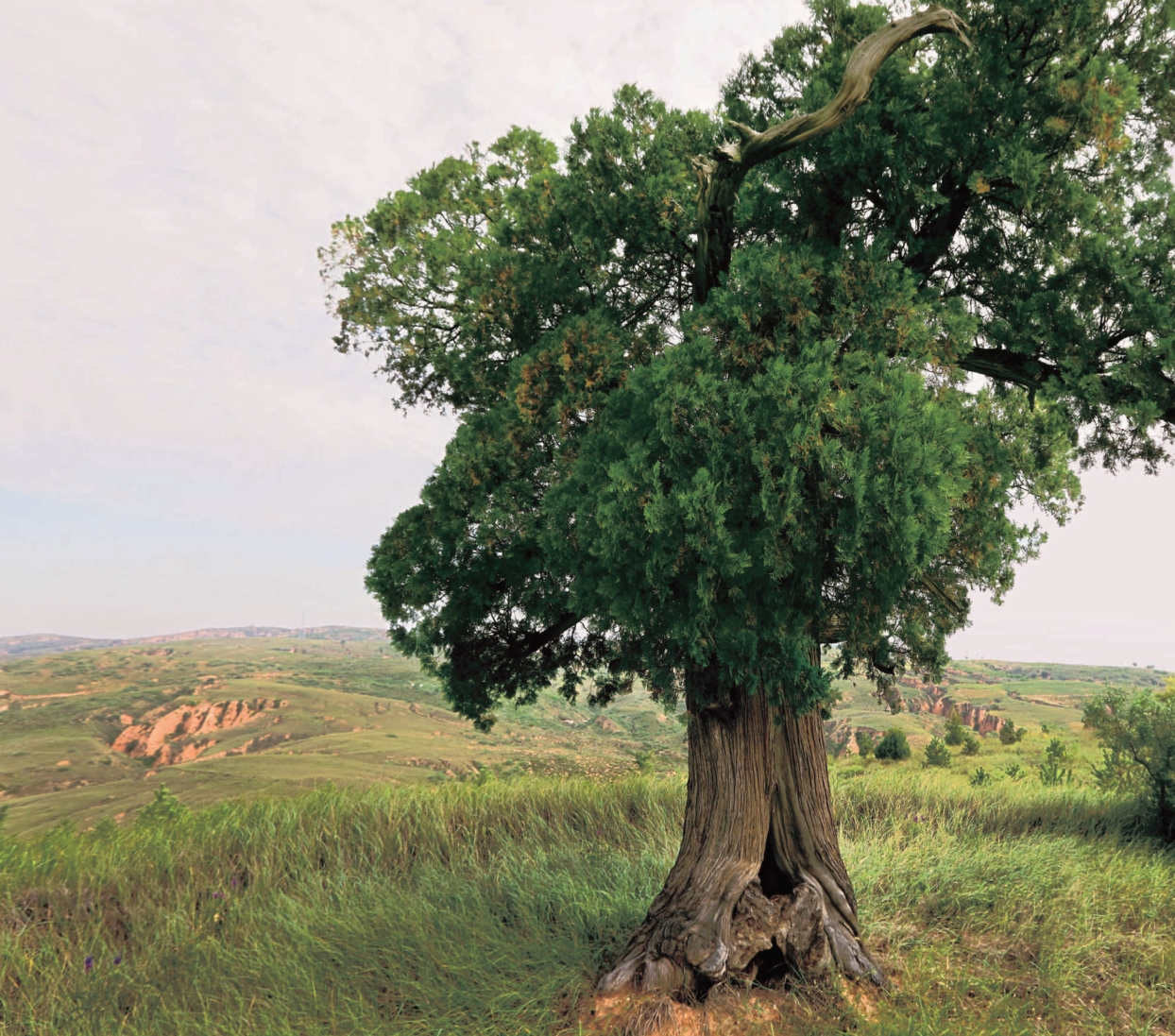 此树生长在神木市解家堡镇柏林村官老爷庙前。主干通直,长势旺盛,树干直冲而上,形如钻子向天而升,在黄土高原上傲然而立,挺拔苍翠,展示着生命的壮美。